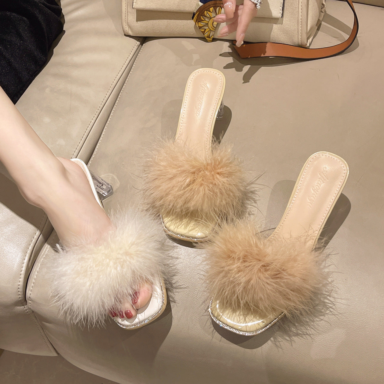 One-word Crystal Thick Heel With Skirt French High Heels